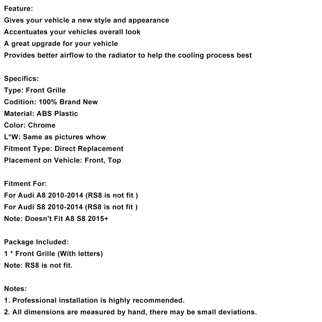 Grille de radiateur chromée pour pare-chocs avant, compatible avec Audi A8 2010-2014