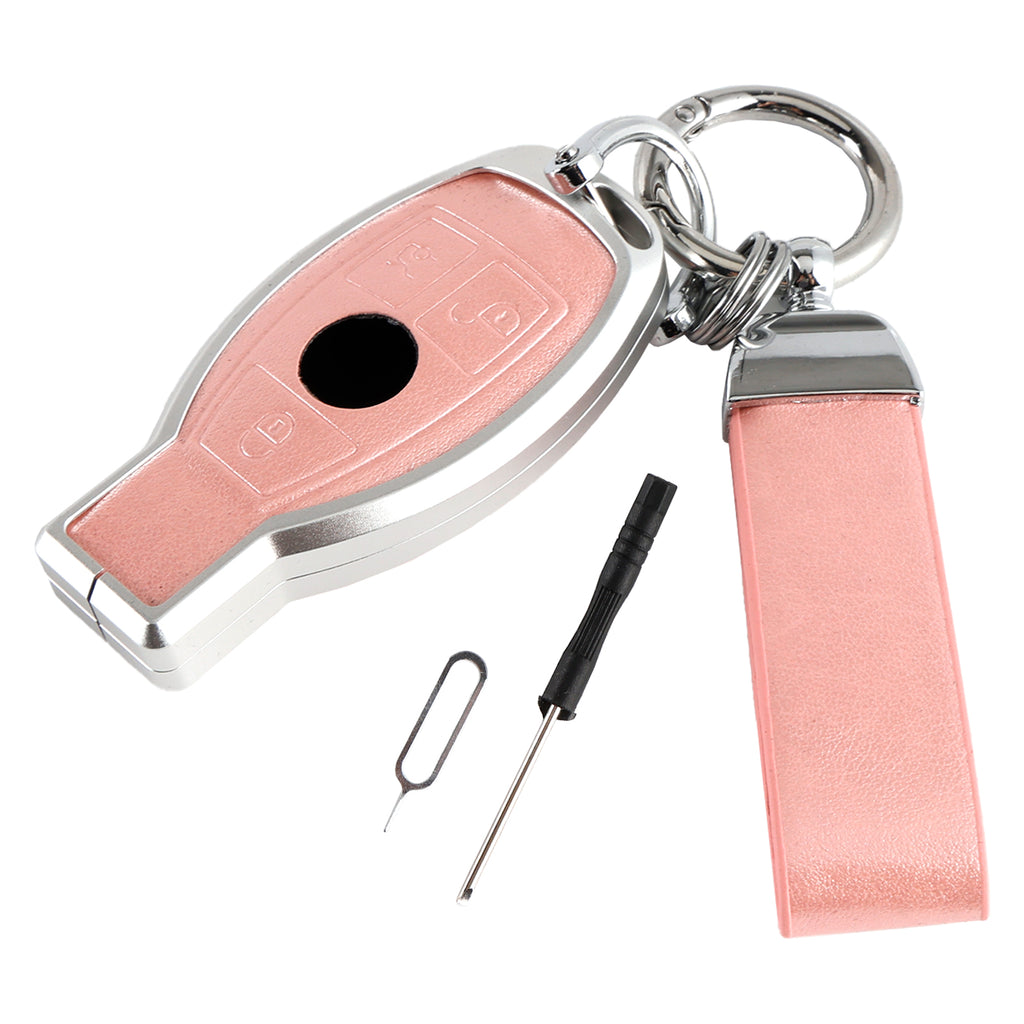 Coque de clé de voiture en alliage d'aluminium TPU rose pour Benz GLC GLK CLS GLA CLA AMG