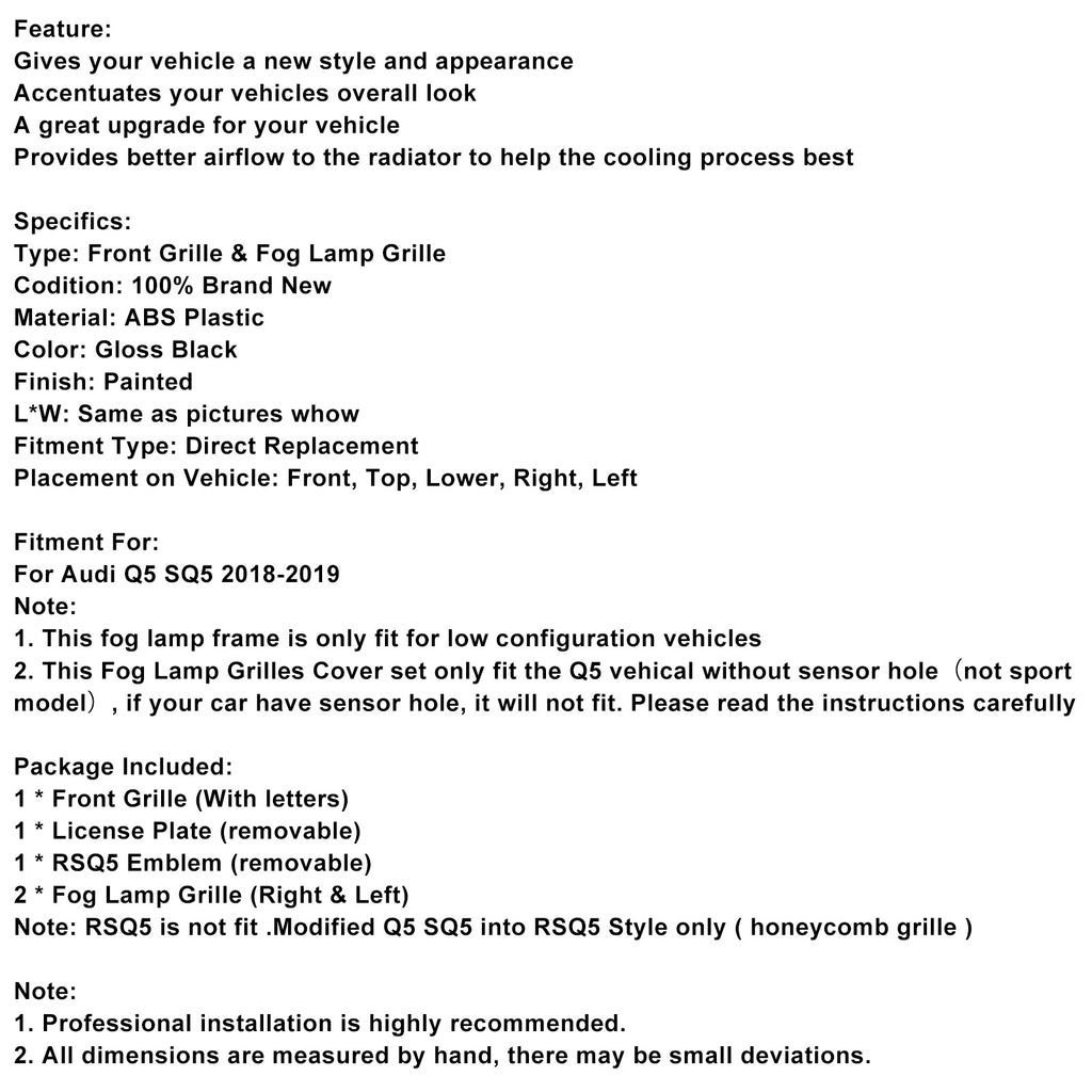 Calandre avant en nid d'abeille et calandre antibrouillard pour Audi Q5 SQ5 2018-2019