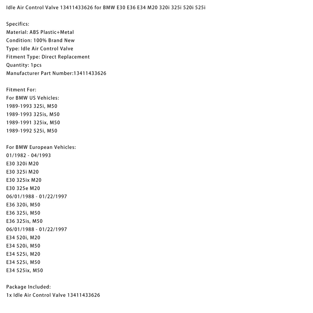 Idle Air Control Valve 13411433626 for BMW E30 E36 E34 M20 320i 325i 520i 525i