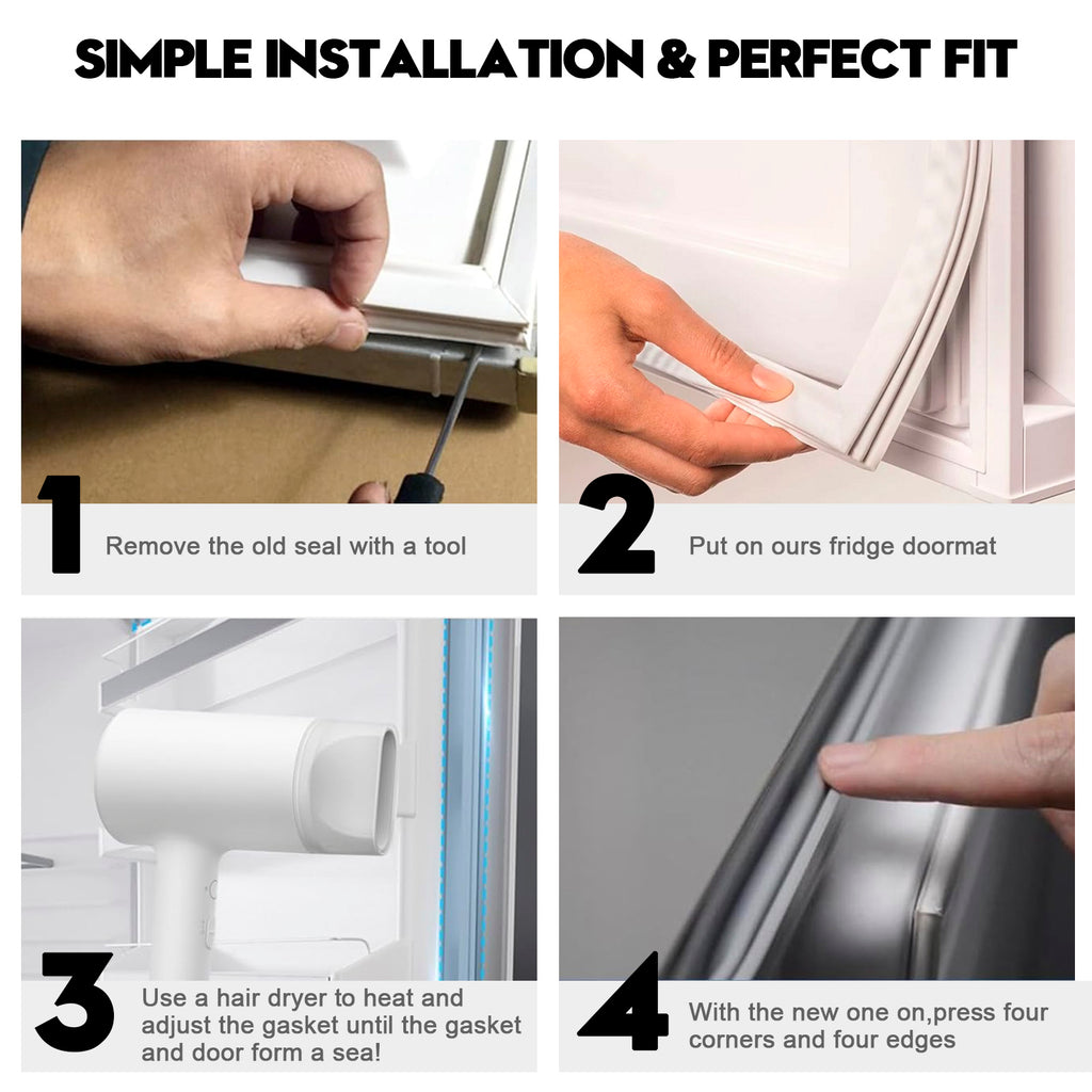 Installation facile : Conçu pour une installation facile sans outils professionnels. Quelques étapes simples suffisent. replace.You vous pouvez facilement l'installer vous-même, vous évitant ainsi les tracas et les coûts liés à l'embauche d'un professional.Refrigerator numéro de pièce 242193206 Commencez l'installation par le haut corners.Make assurez-vous que la rainure et la zone qui l'entoure sont sèches et clean.Then descendre vers le bas corners.And Retirez ensuite la porte du congélateur et retirez l'ancien joint. Placez les nouveaux joints uniformément sur le bord intérieur de la porte, puis réinstallez la porte du congélateur.