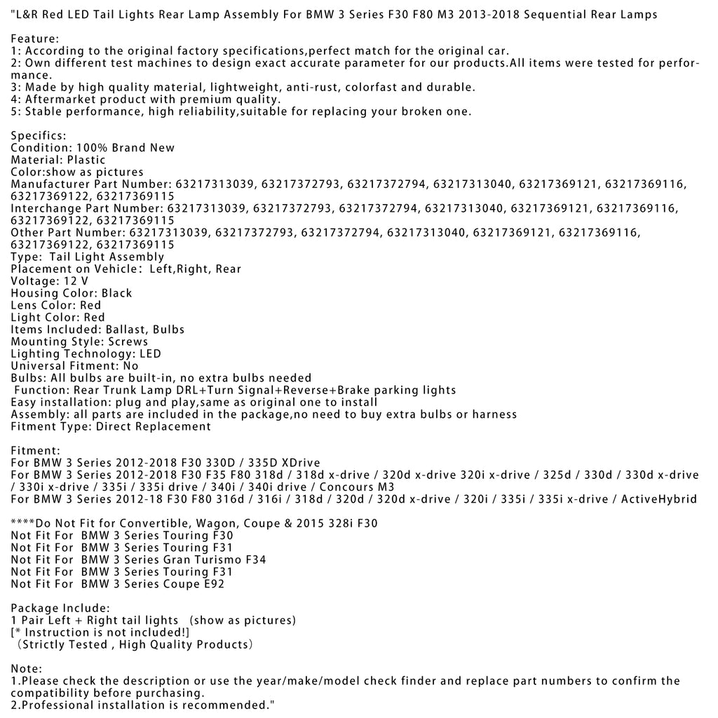 BMW Série 3 F30 330D/335D XDrive L 2012-2018&Ensemble de feux arrière à LED rouges R 63217313039 63217372793