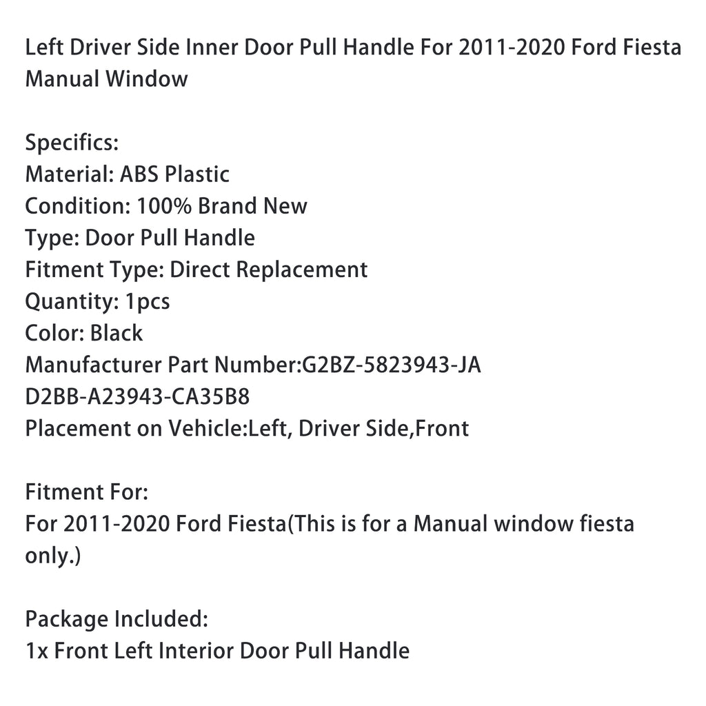 Poignée de porte intérieure gauche côté conducteur pour Ford Fiesta 2011-2020, vitre manuelle