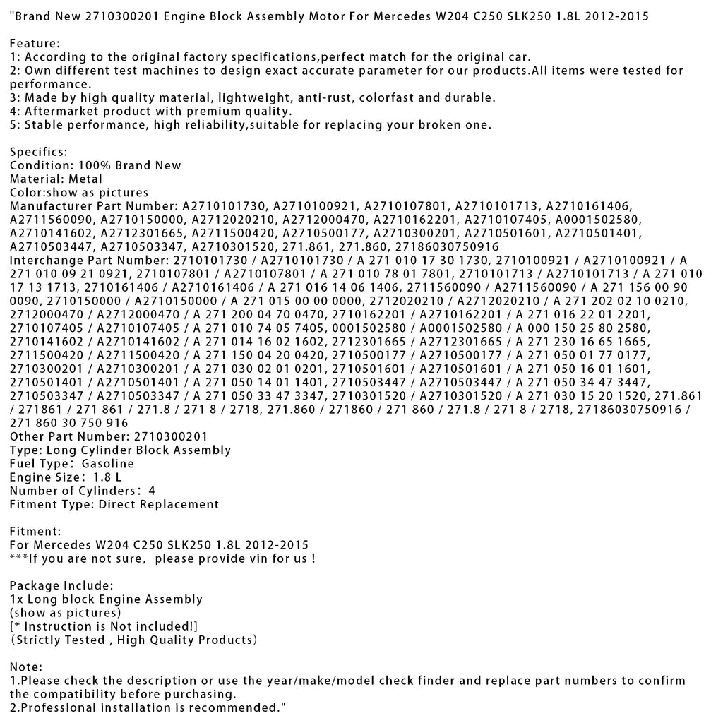 Brand New 2710300201 Engine Block Assembly Motor Fit For Mercedes W204 C250 SLK250 1.8L 2012-2015