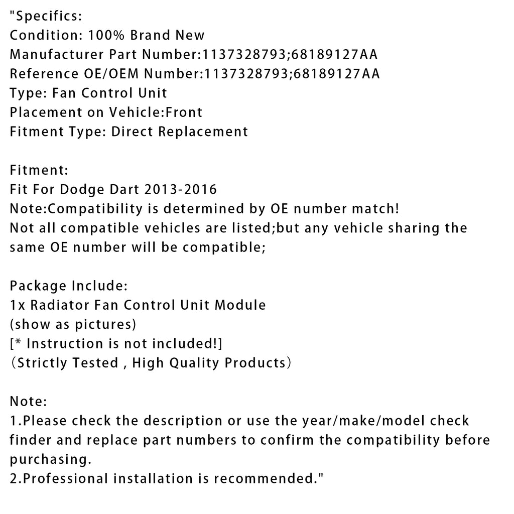 Radiator Fan Control Module Fit For Dodge Dart 2013-2016 1137328793 68189127AA