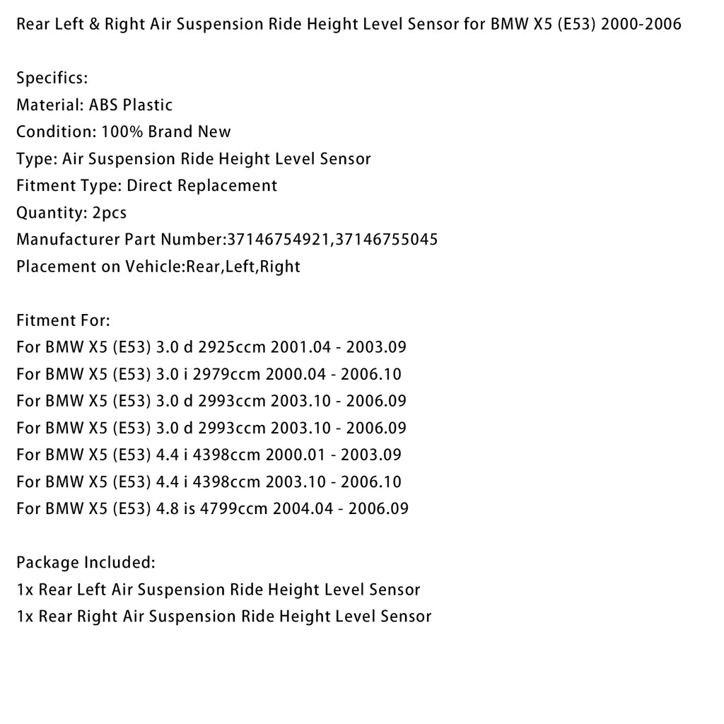 Rear Left & Right Air Suspension Ride Height Level Sensor for BMW X5 (E53) 2000-2006