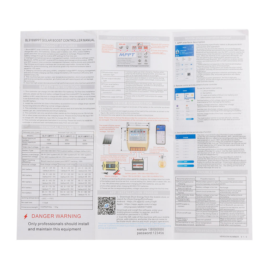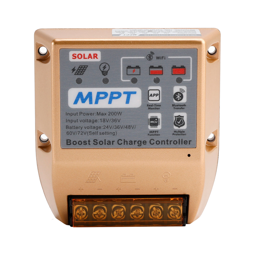 1. Boost MPPT-zonnecontroller, ingangsspanning 18V voor het opladen van 24V- en 36V-accu's, ingangsspanning 36V voor het opladen van 48V-, 60V- en 72V-accu's, veelgebruikt in accu's van auto's, campers, buitenaccu's en andere draagbare voedingen met een laag stroomverbruik. Vergrendel de accuspanning voor het eerste gebruik via de instellingen van de mobiele app.