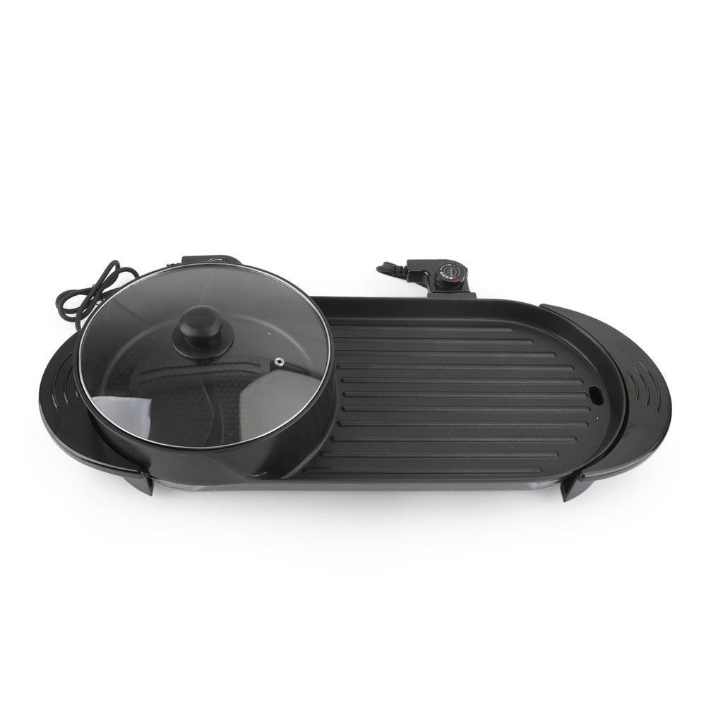 2 in 1 Portable Electric Hot Pot Barbecue Grill Non-Stick Teppanyaki Pan