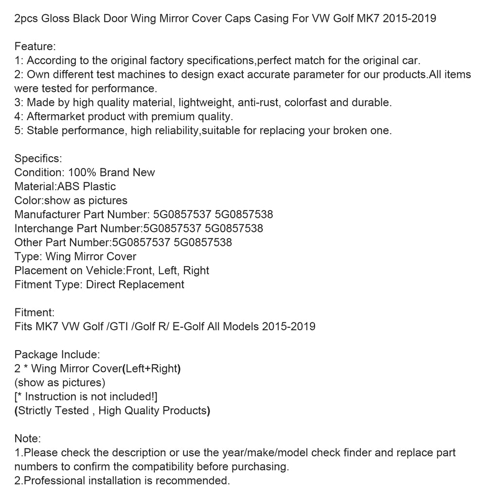 2 stuks glanzend zwarte deurspiegelkappen, geschikt voor VW Golf MK7 2015-2019