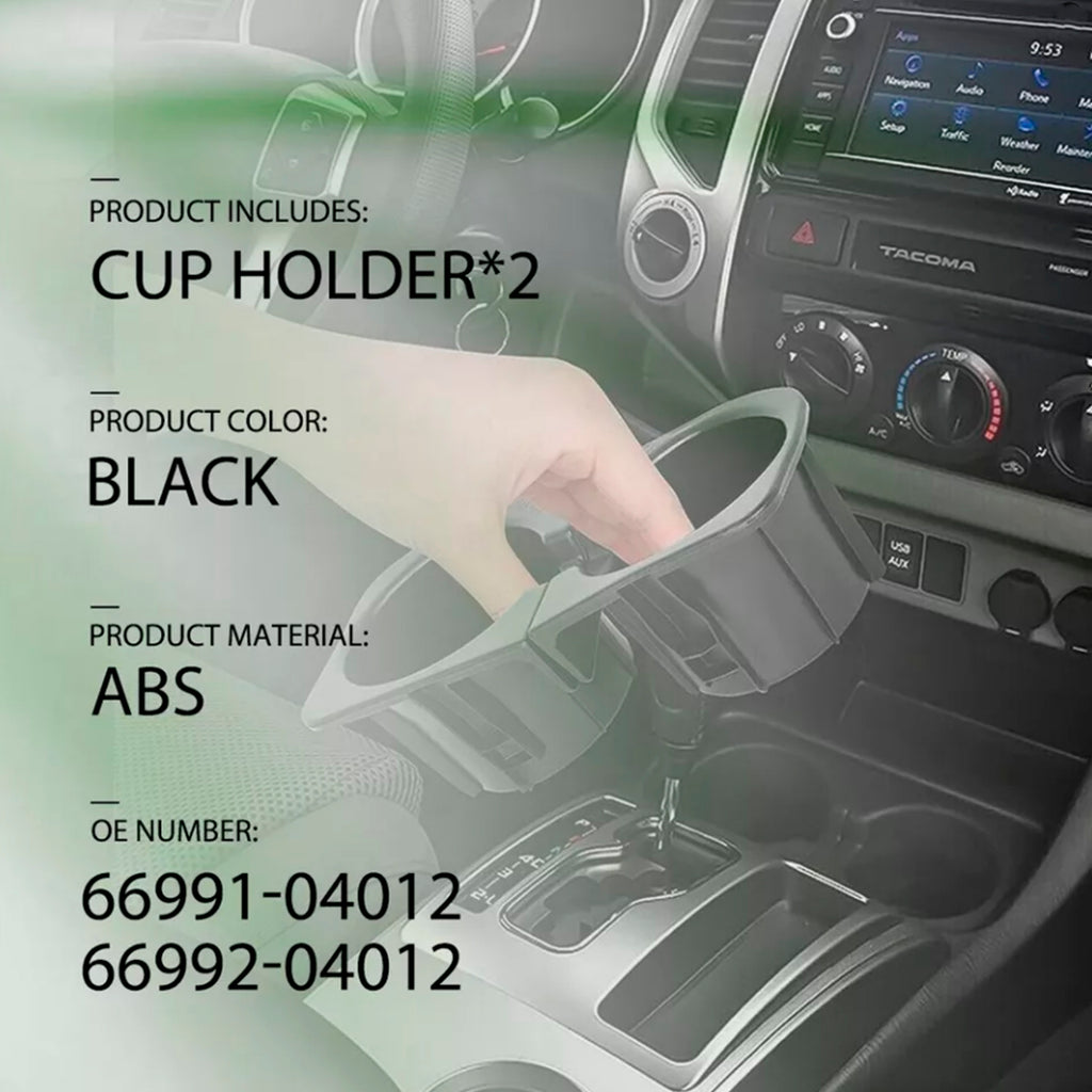 2 stuks zwarte bekerhouderinzetstukken voor de middenconsole (rechts en links) voor Toyota Tacoma 2005-2017