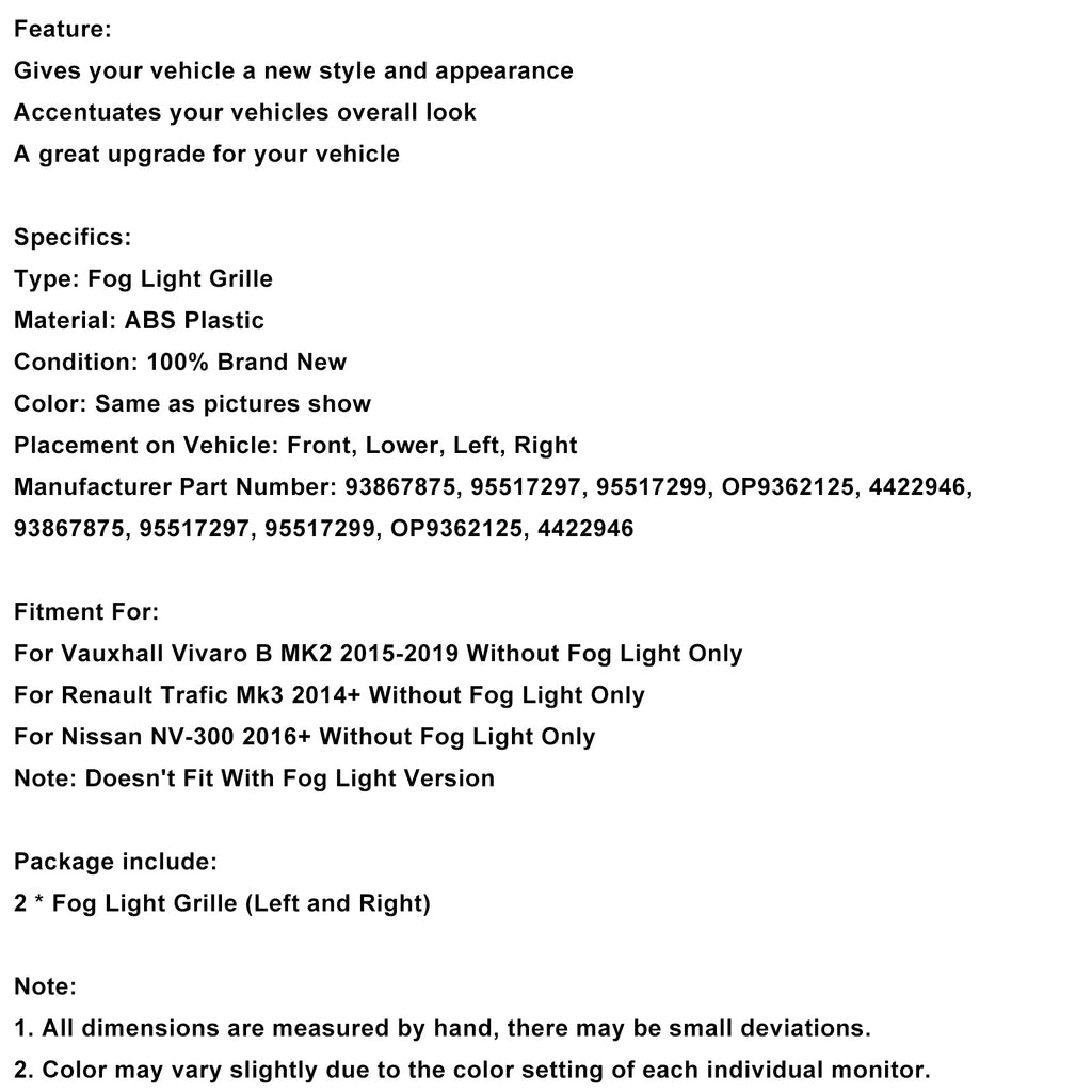 2 stuks voorbumper mistlamp afdekking rooster geschikt voor Vauxhall Vivaro B MK2 2015-2019