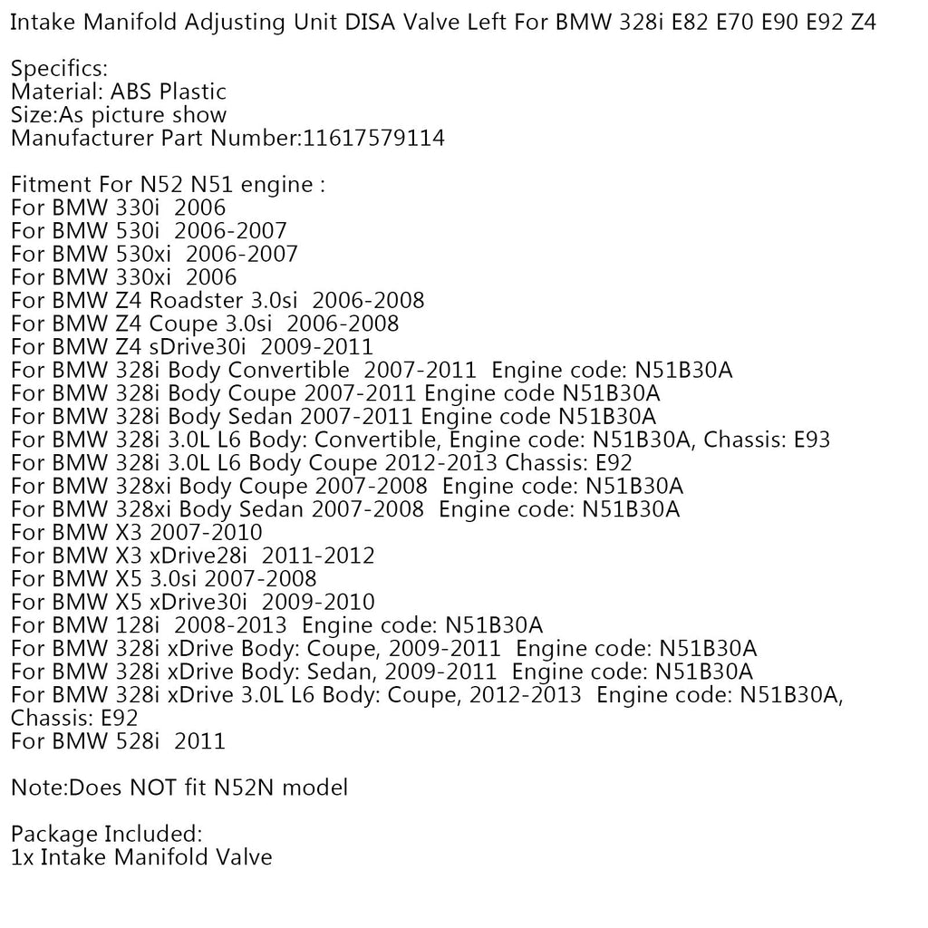 Inlaatspruitstuk afsteleenheid DISA-klep links voor BMW 328i E82 E70 E90 E92 Z4 Generiek