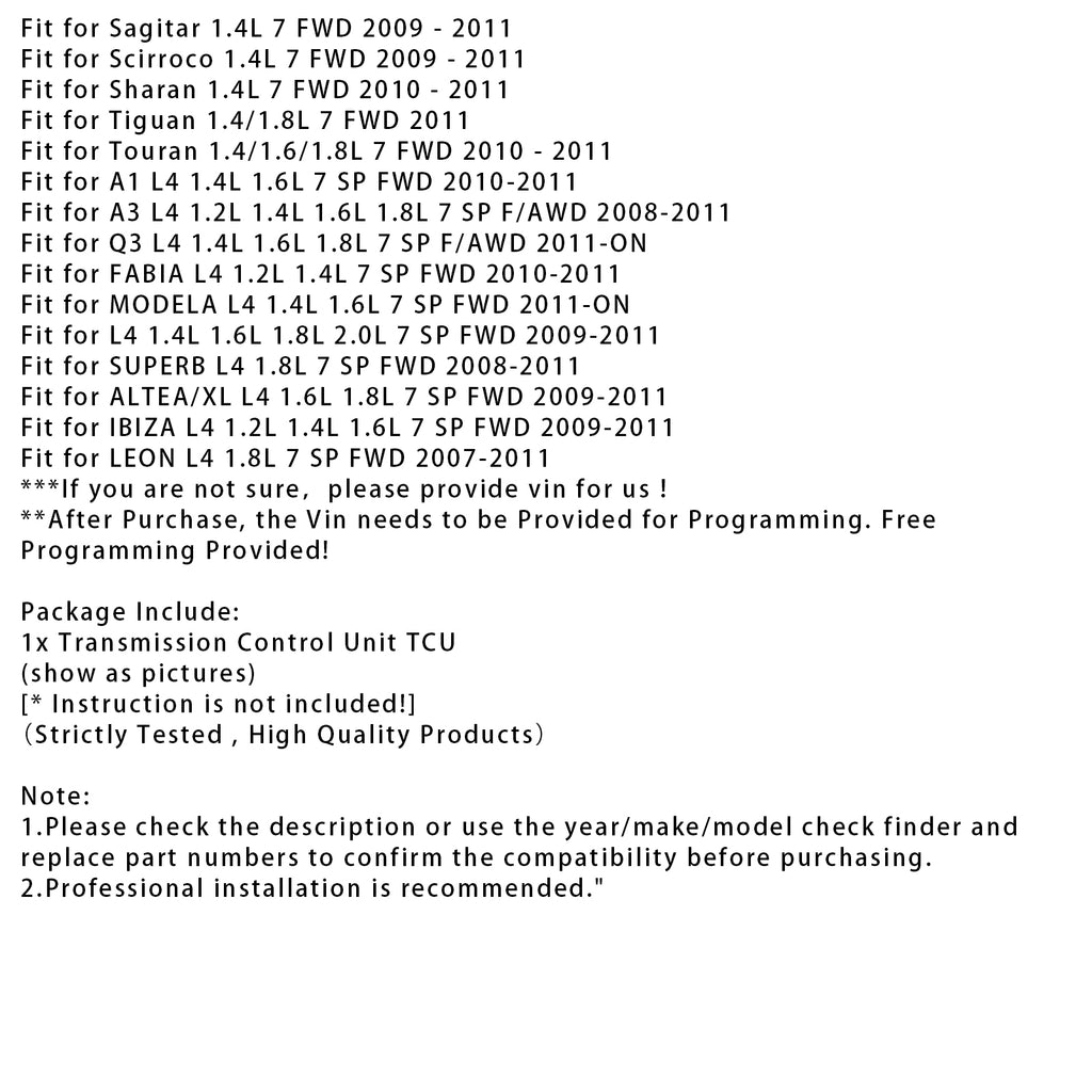 2011-ON Audi Q3 L4 1.4L 1.6L 1.8L 7 SP F/AWD Brand New 0AM Transmission Control Unit TCU TCM 0AM927769K DQ200