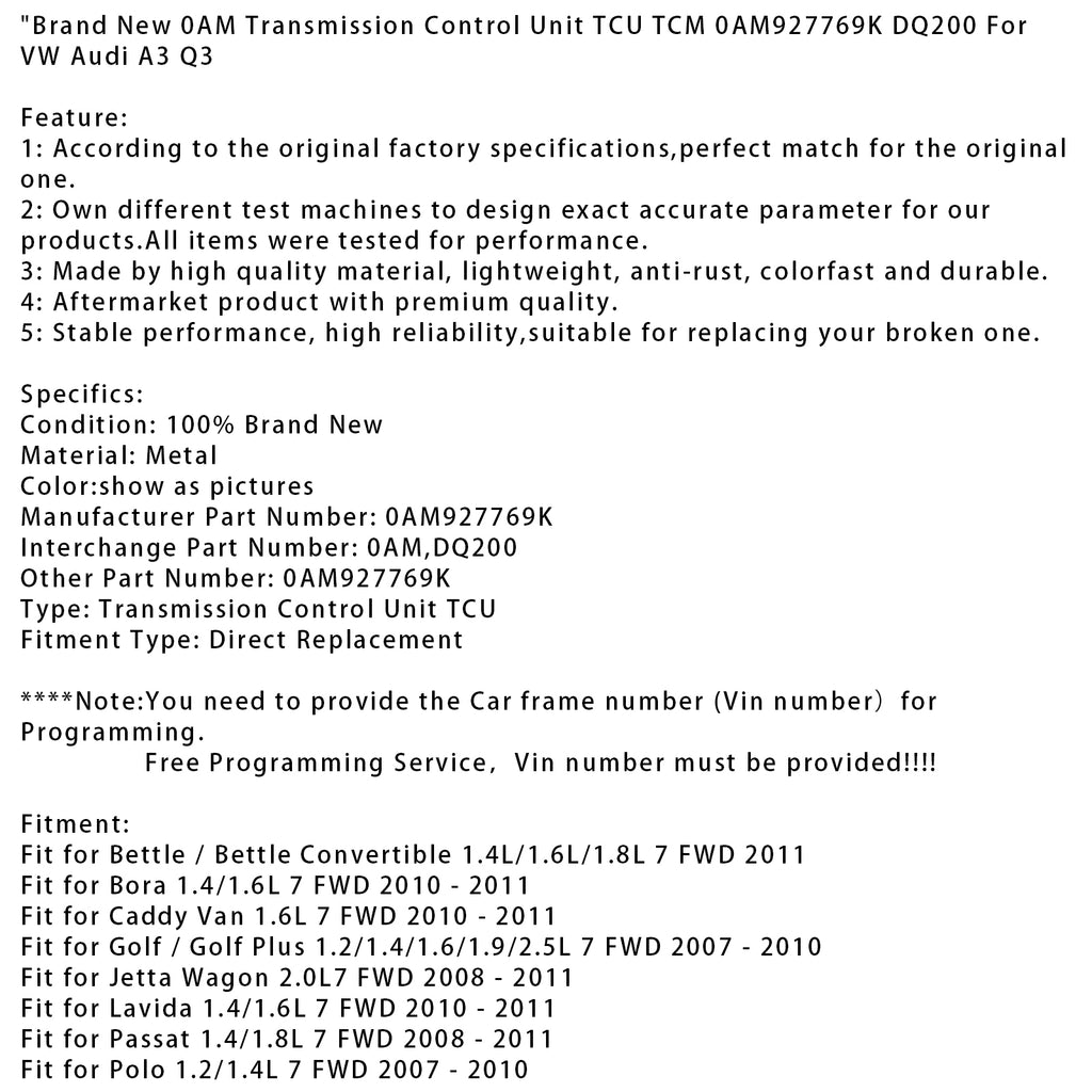 Brand New 0AM Transmission Control Unit TCU TCM 0AM927769K DQ200 Fit For VW Audi A3 Q3