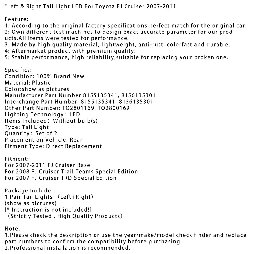 Links & Rechter achterlicht LED voor Toyota FJ Cruiser 2007-2011