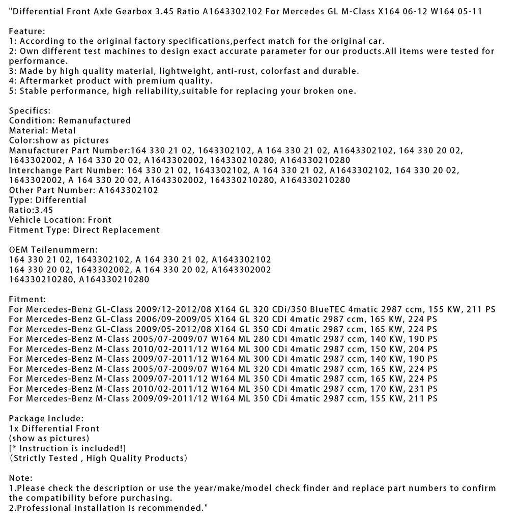 Differentieel vooras versnellingsbak 3.45 overbrengingsverhouding A1643302102 voor Mercedes GL M-Klasse X164 06-12 W164 2005-2011