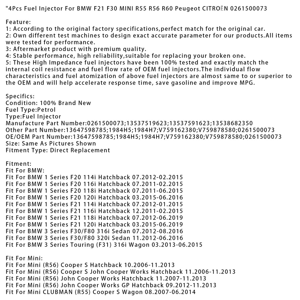 4Pcs Fuel Injector For BMW F21 F30 MINI R55 R56 R60 Peugeot CITROËN 0261500073