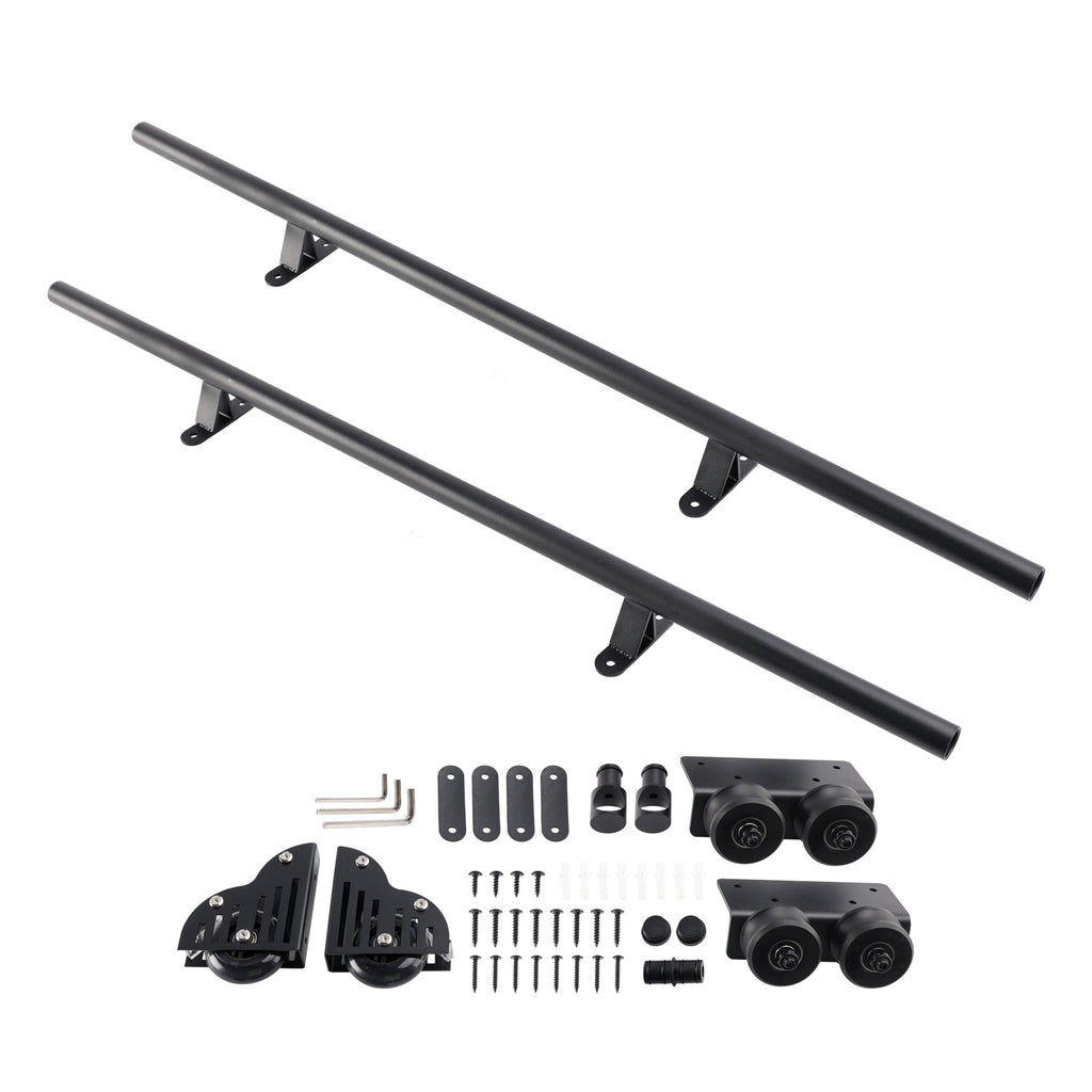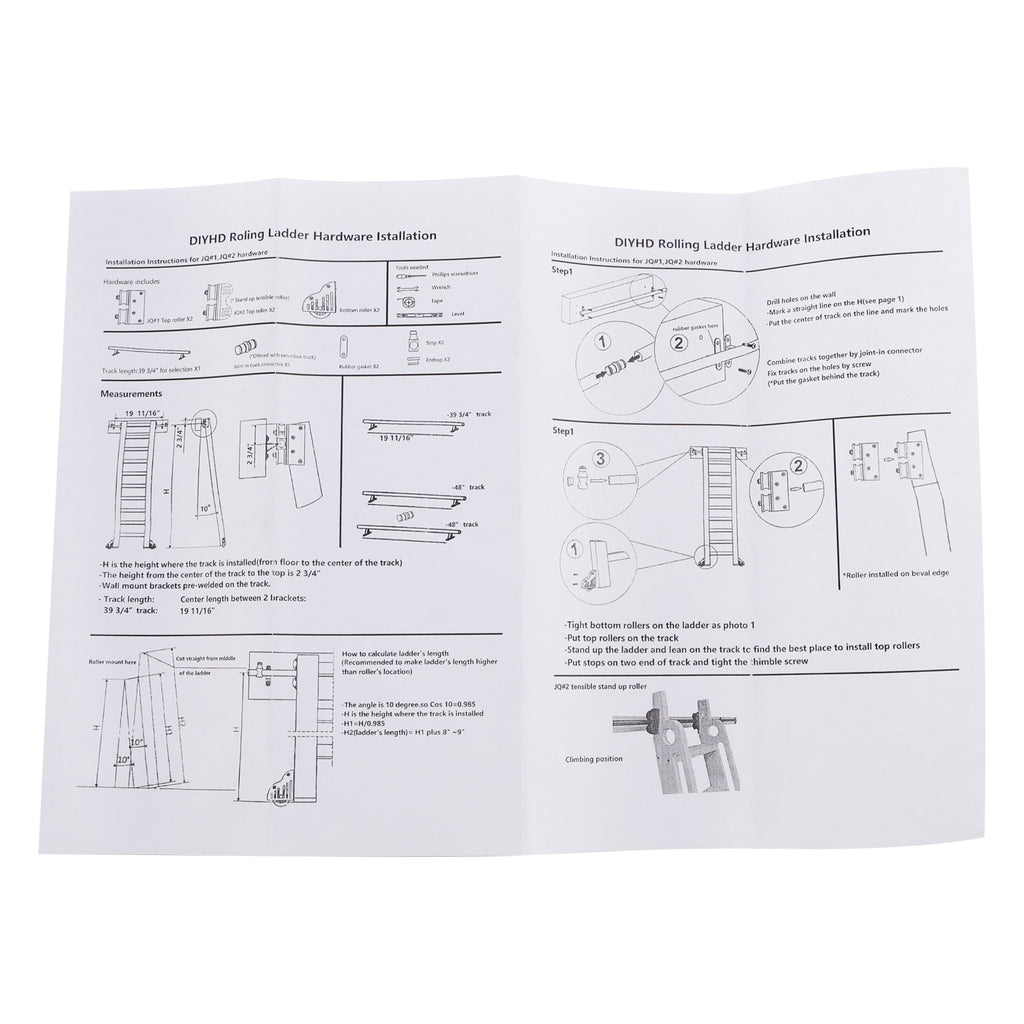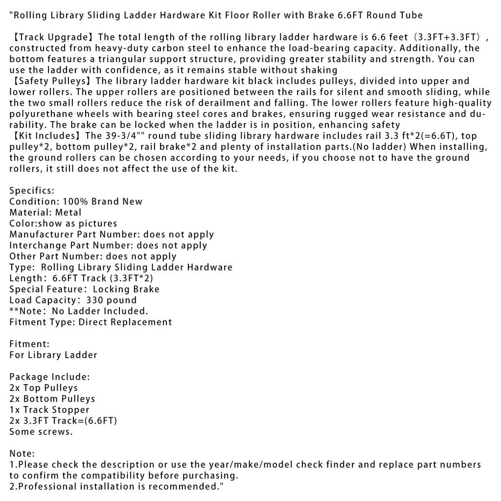 【Kit bevat】De 39-3/4" De hardware voor de schuifbibliotheek met ronde buizen omvat een rail van 3,3 ft*2 (=6,6T), een bovenste katrol*2, een onderste katrol*2, een railrem*2 en veel installatieonderdelen. (Geen ladder) Bij de installatie kunt u de grondrollen naar behoefte kiezen. Als u besluit om geen grondrollen te hebben, heeft dit geen invloed op het gebruik van de kit.