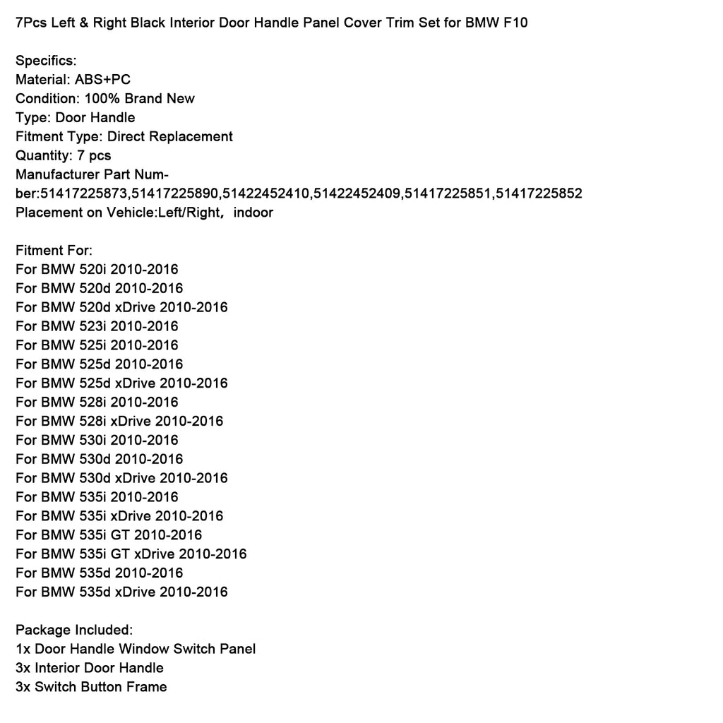 7x Zwart Binnendeurpaneel Handvat Pull Trim Cover Voor BMW 5 Serie F10 F11 10-16
