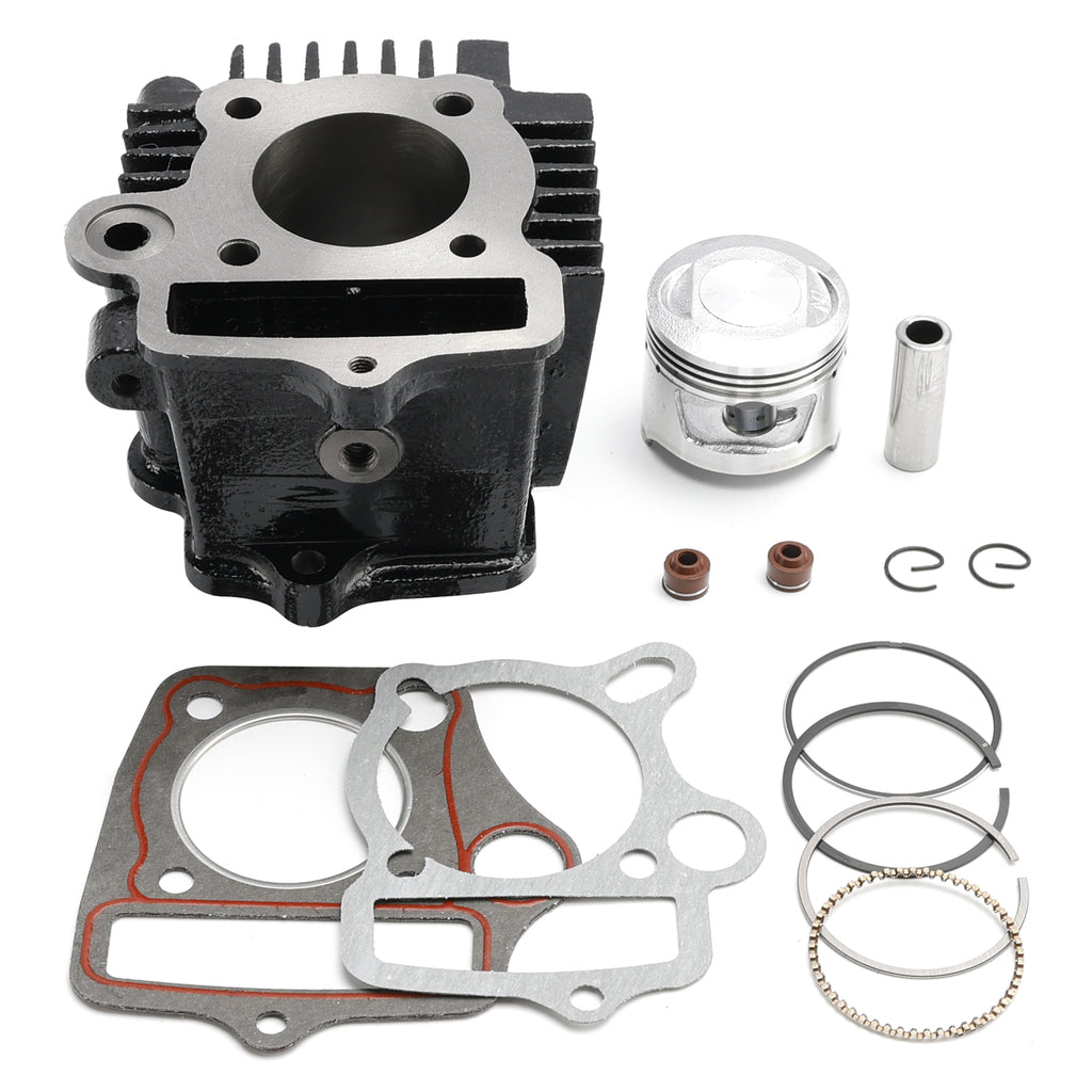 De set bevat cilinder, cilinderkop, zuiger, ringen, pen en clips & top-end pakkingset (je krijgt precies wat op de foto staat).