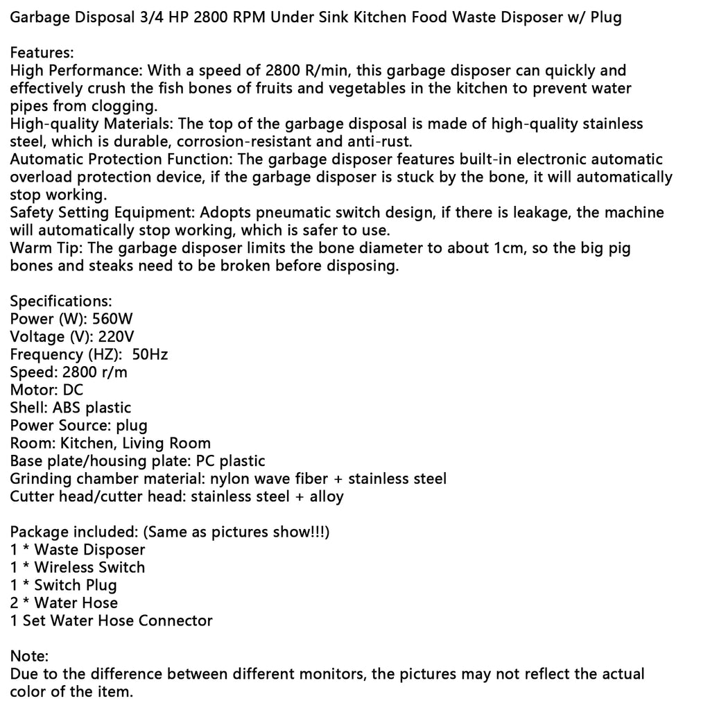 Hoge prestaties: Met een snelheid van 2800 R/min kan deze afvalvermaler snel en effectief de visgraten van fruit en groenten in de keuken vermalen om verstoppingen in de waterleidingen te voorkomen.