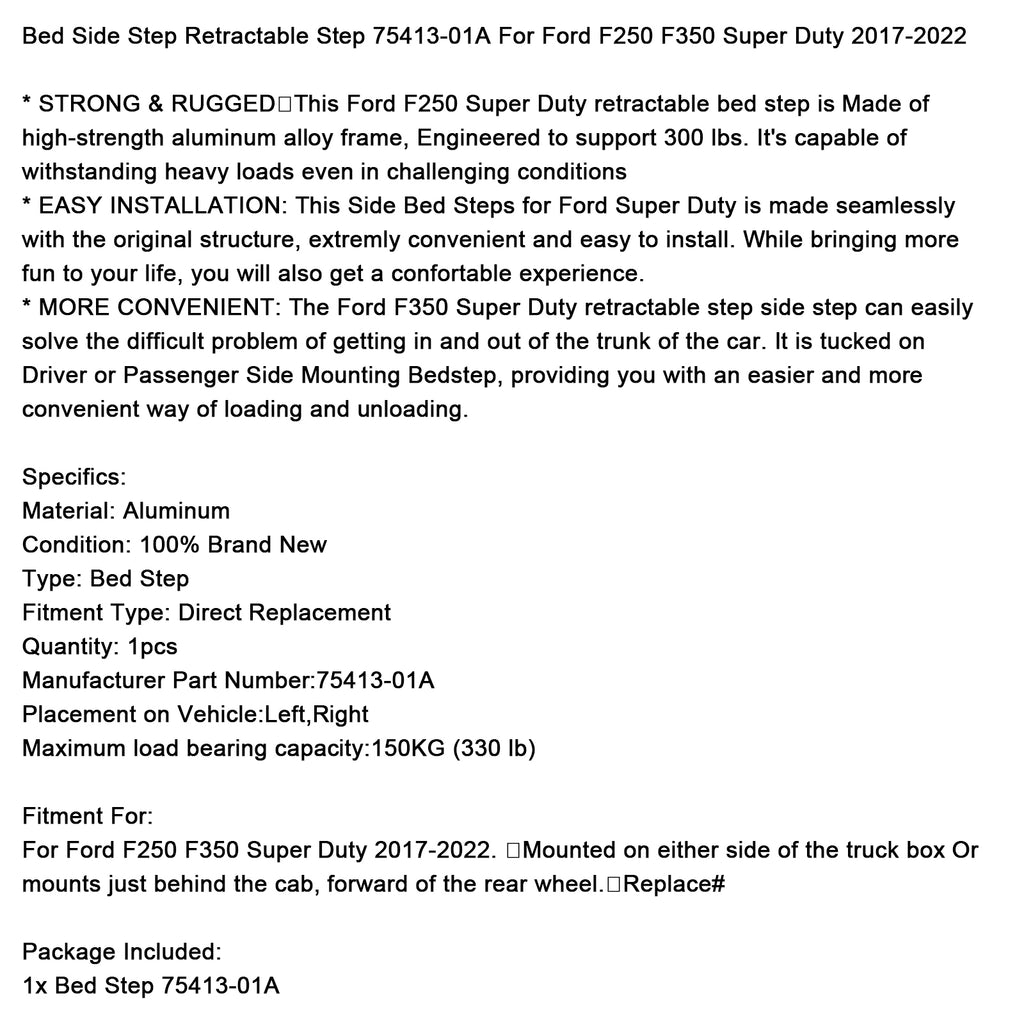 Voor Ford F250 F350 Super Duty 2017-2022. (Kan aan beide zijden van de laadbak worden gemonteerd of net achter de cabine, vóór het achterwiel.) Vervangen#