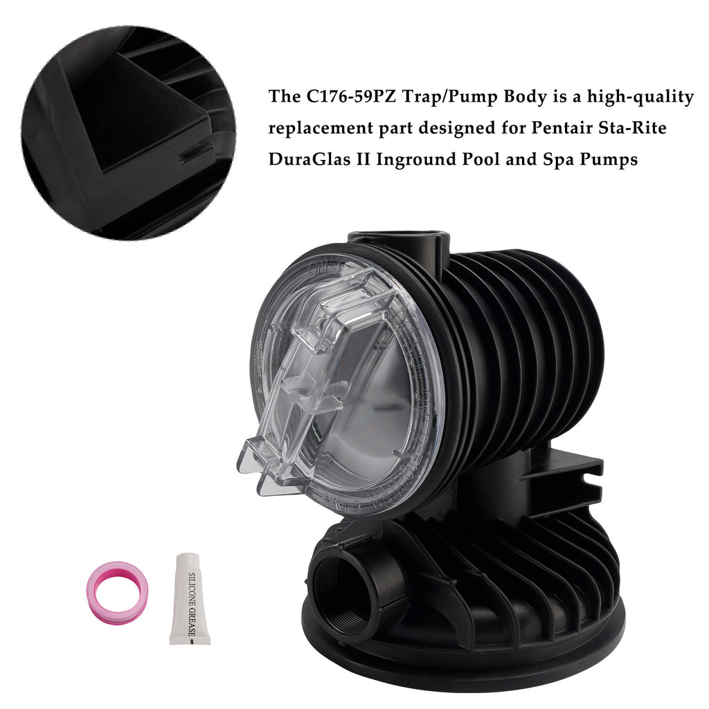The C176-59PZ Trap/Pump Body is a high-quality replacement part designed for Pentair Sta-Rite DuraGlas II Inground Pool and Spa Pumps. This Trap/Pump Body is essential for the efficient operation of your pool pump, acting as a key component in the filtration system. It is durability and resistance to corrosion, this part ensures long-lasting performance and reliability. The C176-59PZ is the updated version of the C76-59P part number, offering the same reliable function.
