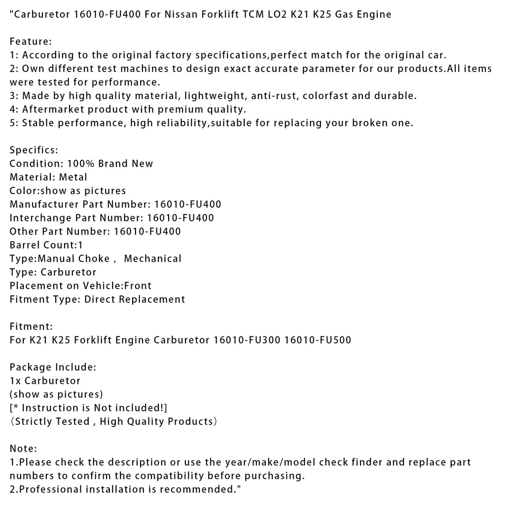 Voor K21 K25 heftruckmotor carburateur 16010-FU300 16010-FU500