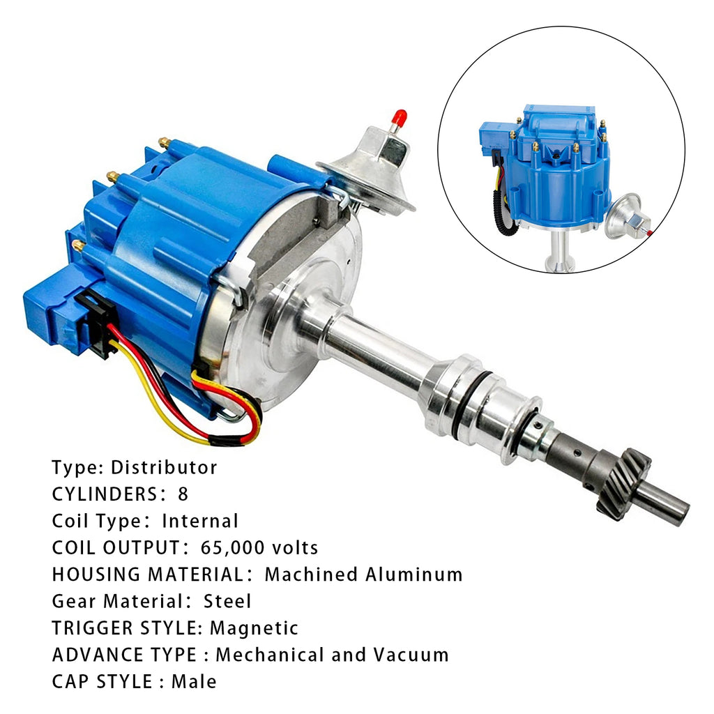 Distributor 65,000 KV Coil 7500 RPM Module For Ford 351C 351M 400 429 460