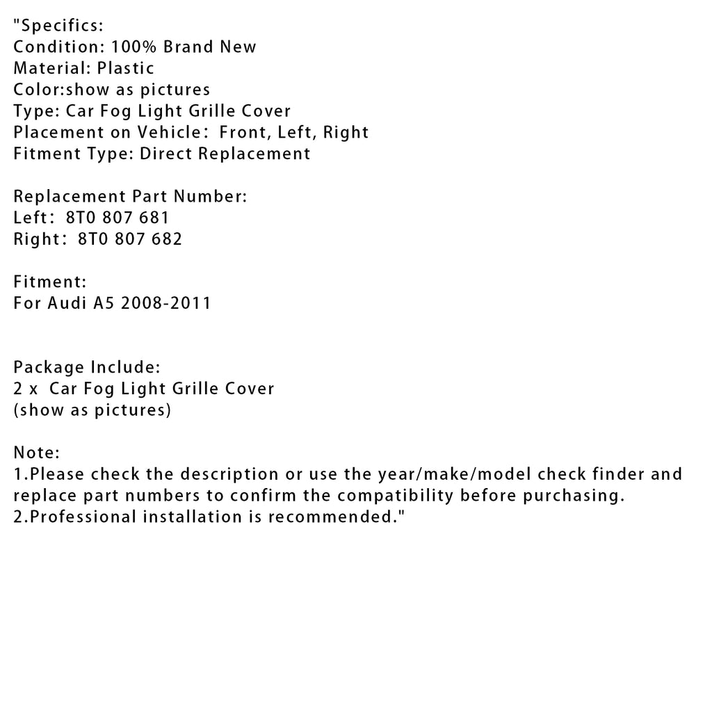 2008-2011 Audi A5 Een paar automistlamproosters 8T0 807 682 8T0 807 681