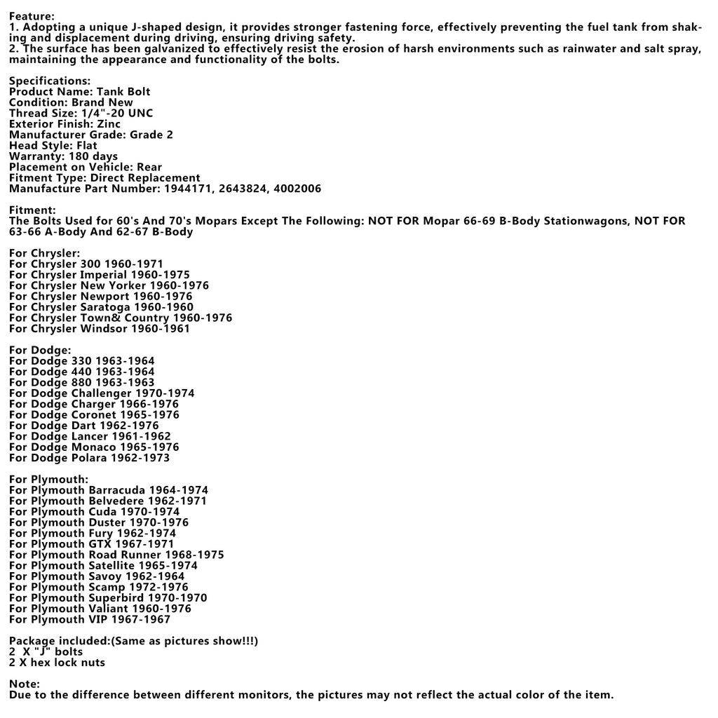 De bouten die gebruikt worden voor Mopars uit de jaren 60 en 70, behalve de volgende: NIET VOOR Mopar 66-69 B-Body Stationwagons, NIET VOOR 63-66 A-Body en 62-67 B-Body