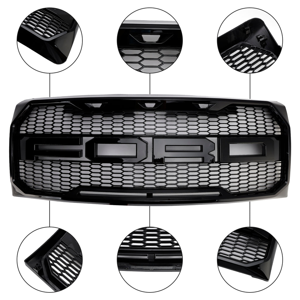 Gloss Black Raptor Style Front Bumper Grille Grill Fit for Ford F150 2009-2014