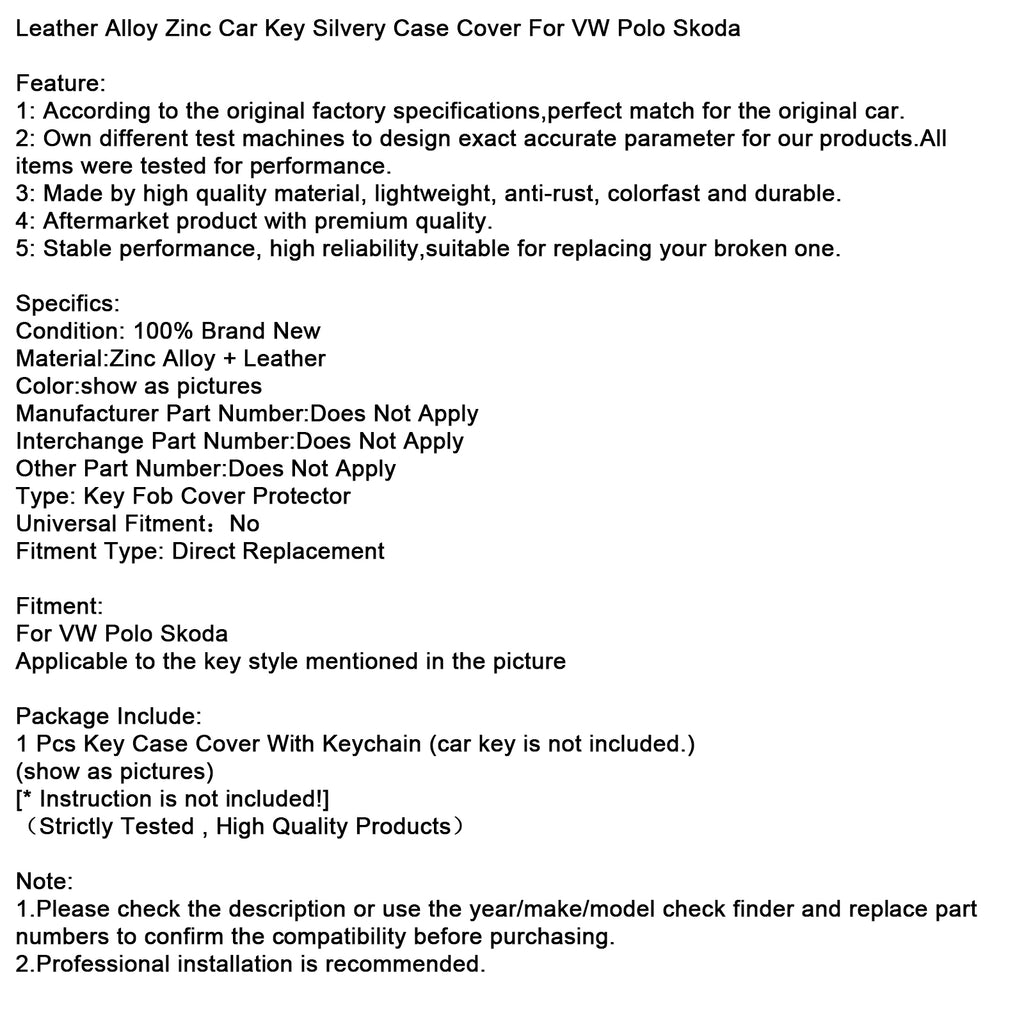 Leather Alloy Zinc Car Key Silvery Case Cover For VW Polo Skoda