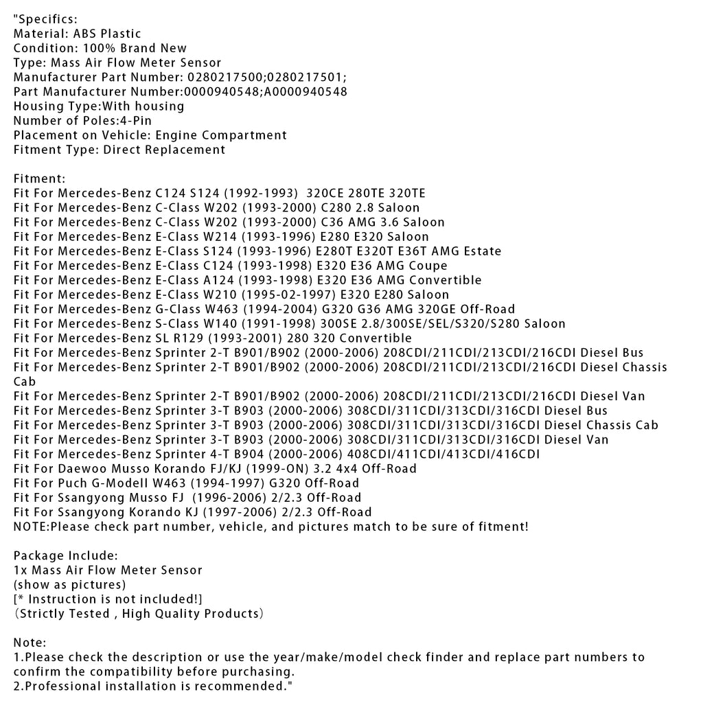 Massaluchtstroommetersensor voor Mercedes W202 W140 Sprinter 2-T 3-T 0280217500