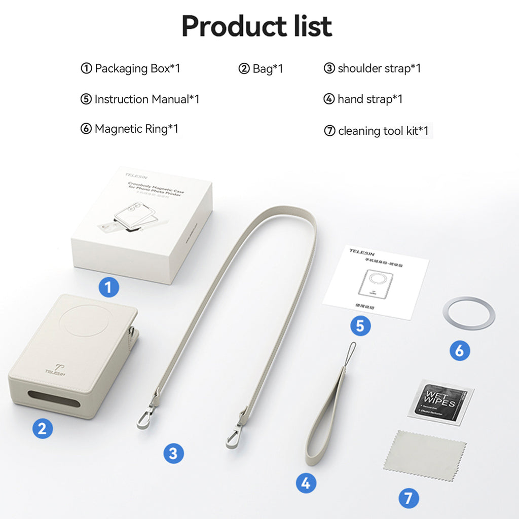 Compatibel met de Xiaomi Pocket Photo Printer 1e generatie/1s, draagbare cameratas met magnetische houder voor mobiele telefoons. Reis licht en maak altijd en overal foto's.