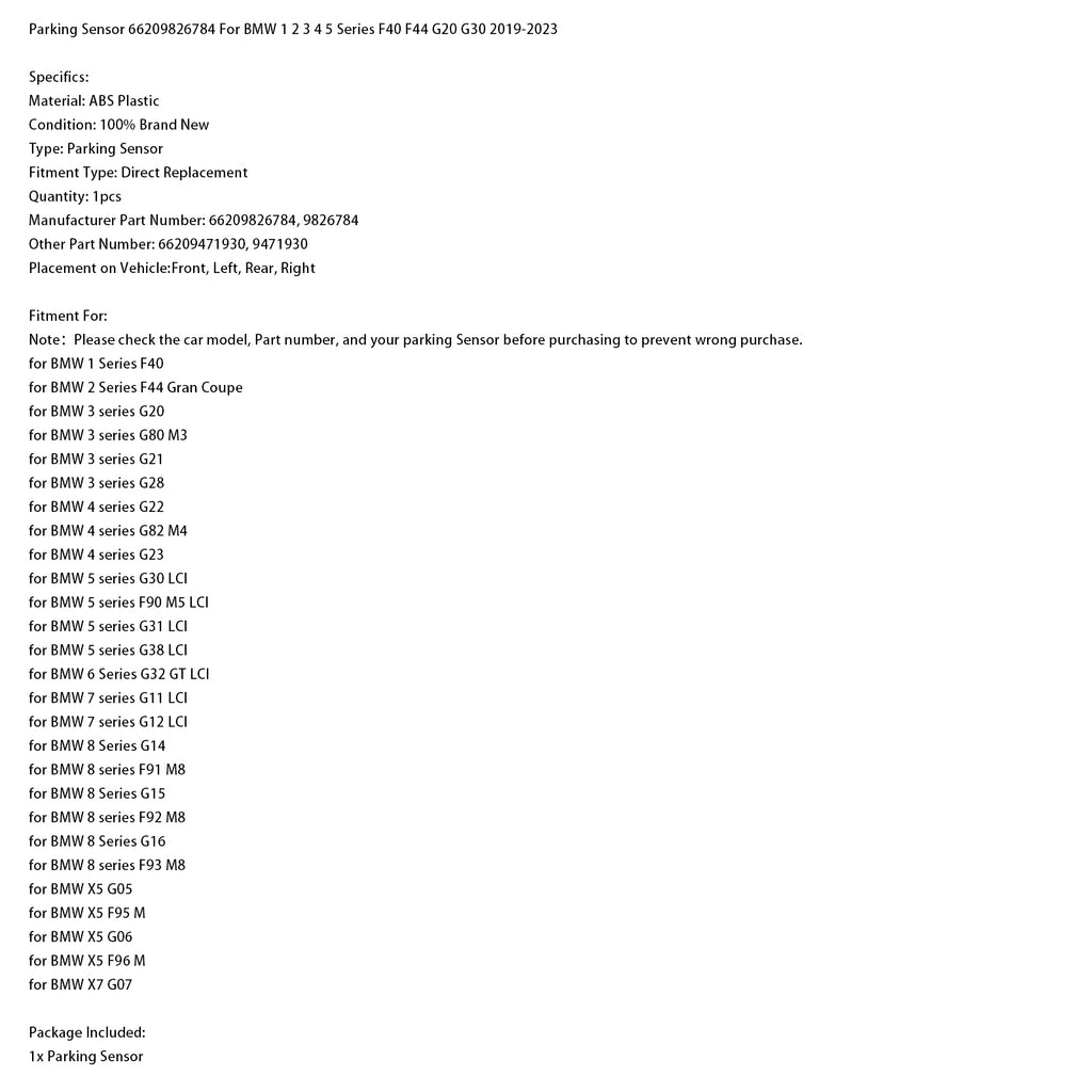 Parking Sensor 66209826784 For BMW 1 2 3 4 5 Series F40 F44 G20 G30 2019-2023
