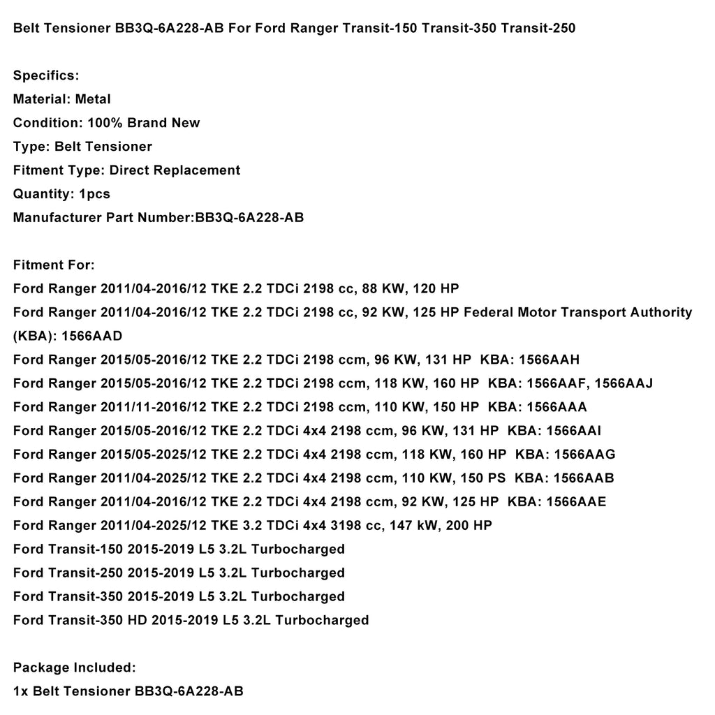 Riemspanner BB3Q-6A228-AB voor Ford Ranger Transit-150 Transit-350 Transit-250