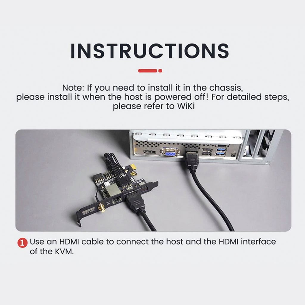 NanoKVM PCle voegt optionele WiFi- en POE-functies toe aan NanoKVM Cube; het beschikt over een eigen PCle-slot en kan worden gevoed via het PCle-slot van het moederbord; daarnaast is de bekabelde verbinding (ETH) ook stabieler en kan deze voldoen aan meer professionele behoeften.