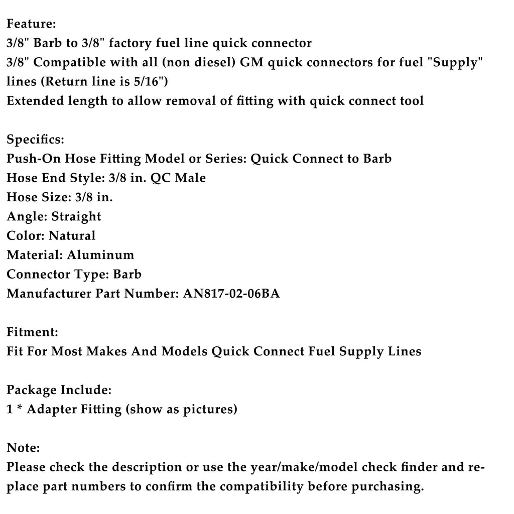 3/8" Compatibel met alle (niet-diesel) GM-snelkoppelingen voor brandstoftoevoerleidingen (retourleiding is 5/16")