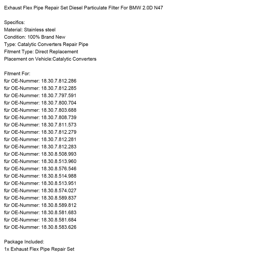 Reparatieset voor flexibele uitlaatpijp en dieselroetfilter voor BMW 2.0D N47