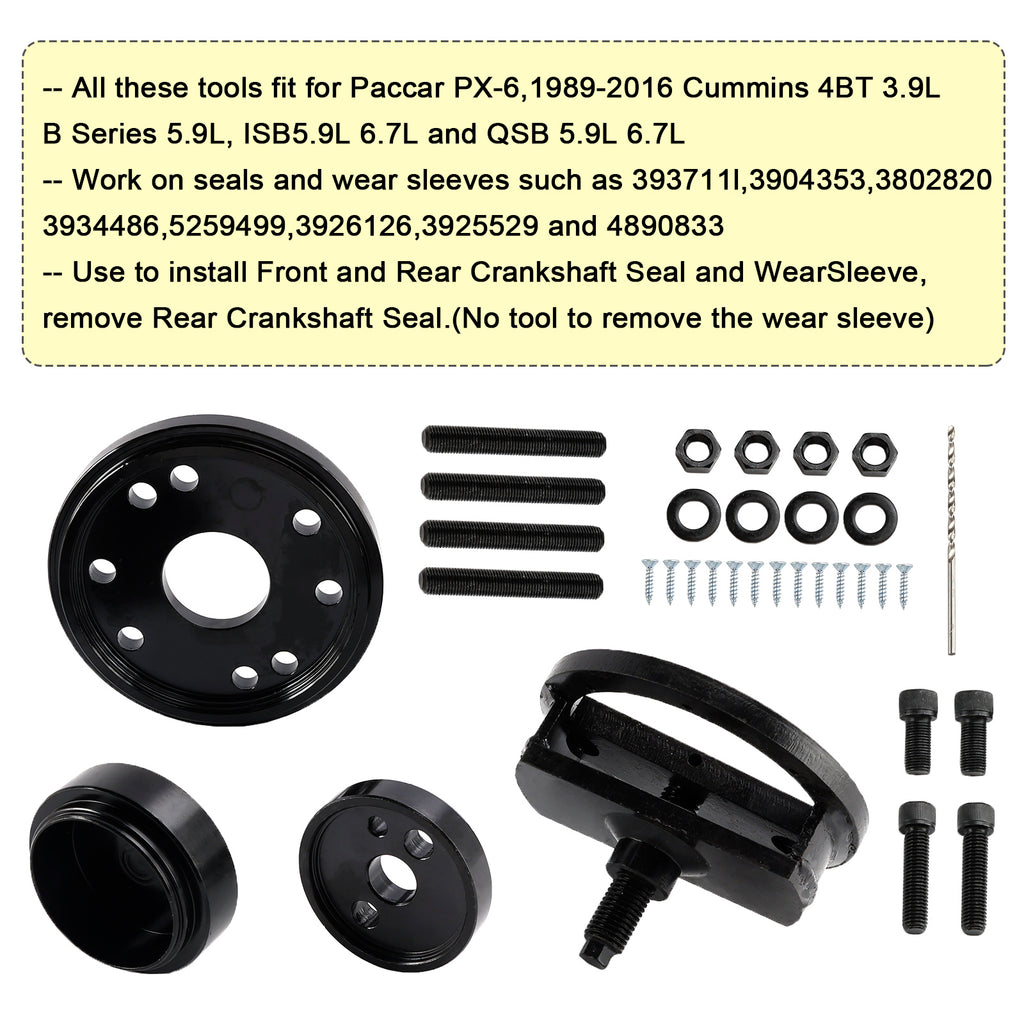 Krukaskeerringverwijderaar voor en achter &Amp; Installer met slijtmof installatiegereedschapset voor Cummins 3.9L 5.9L 6.7L 1989-2016 Vervang 1338 3824498 5046 3824500 3164660 ST-224C 3824078 5395259 2063800090