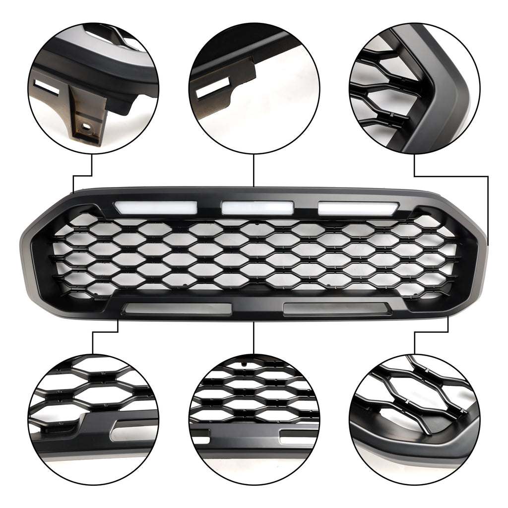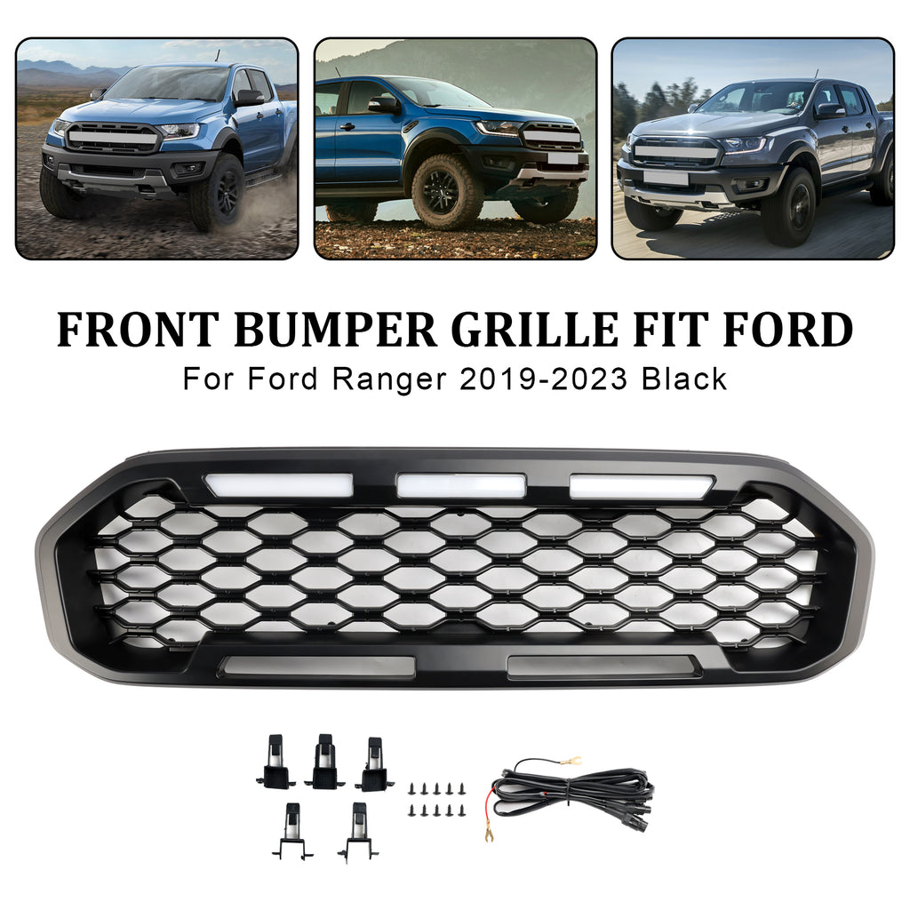 Voorbumpergrille geschikt voor Ford Ranger T8 2019-2023 zwart met ledverlichting
