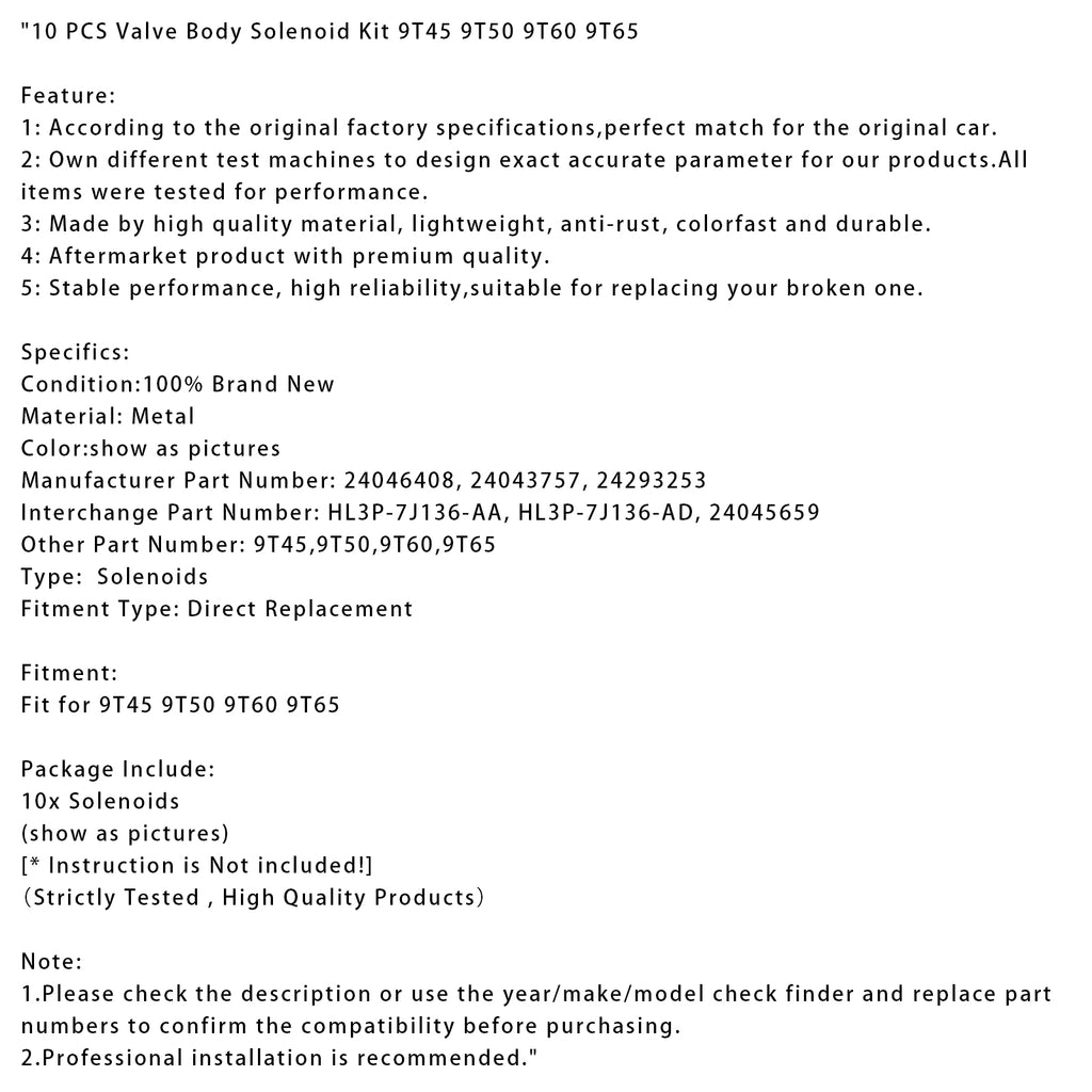 10 PCS Valve Body Solenoid Kit 9T45 9T50 9T60 9T65
