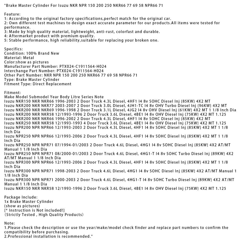 07/1994-01/2003 Isuzu NPR250 NPR NPR71 2-deurs vrachtwagen 4.6L diesel hoofdremcilinder PTX024-C1911564-H024 NKR66