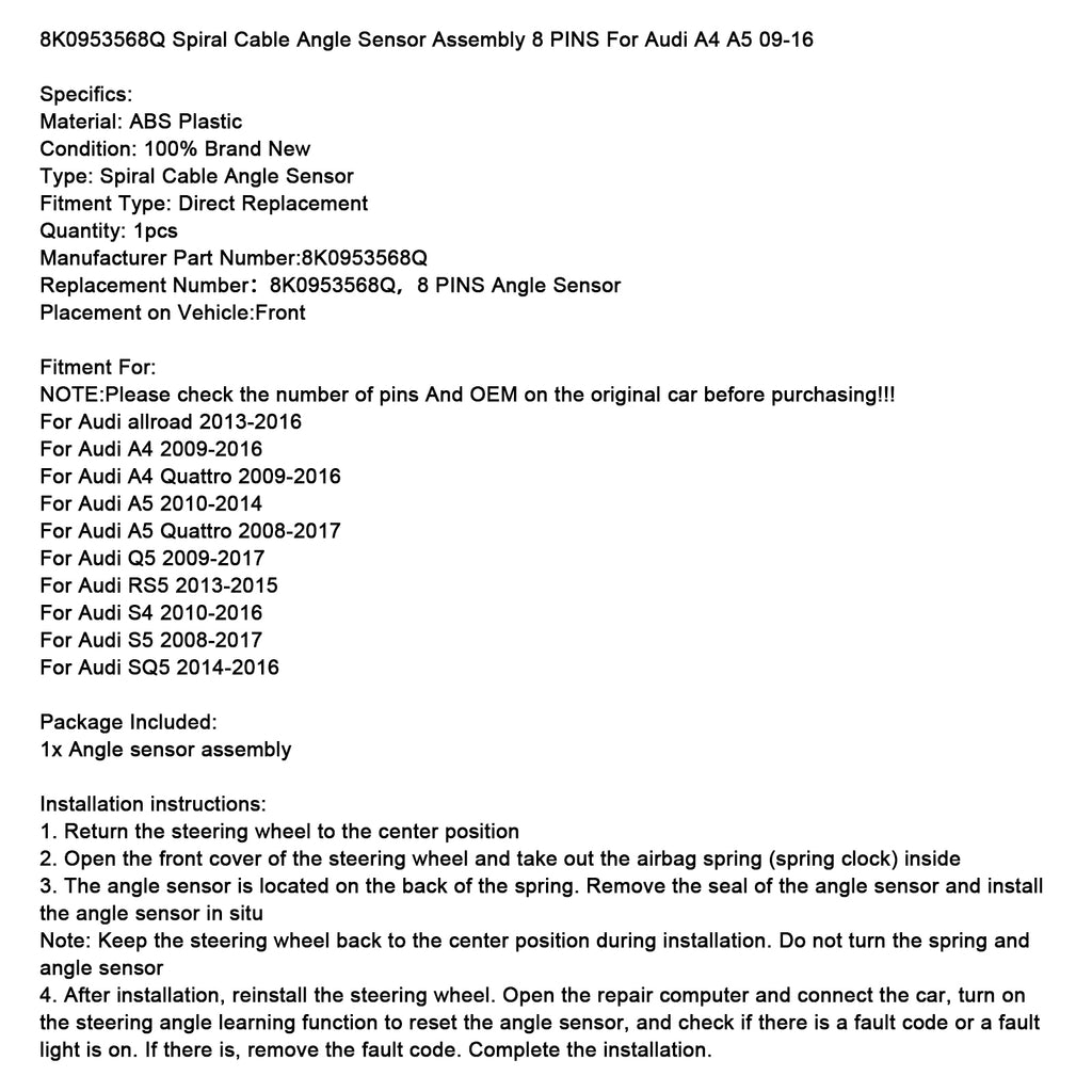 8K0953568Q Spiraalkabelhoeksensor assemblage 8 PINS voor Audi A4 A5 2009-2016