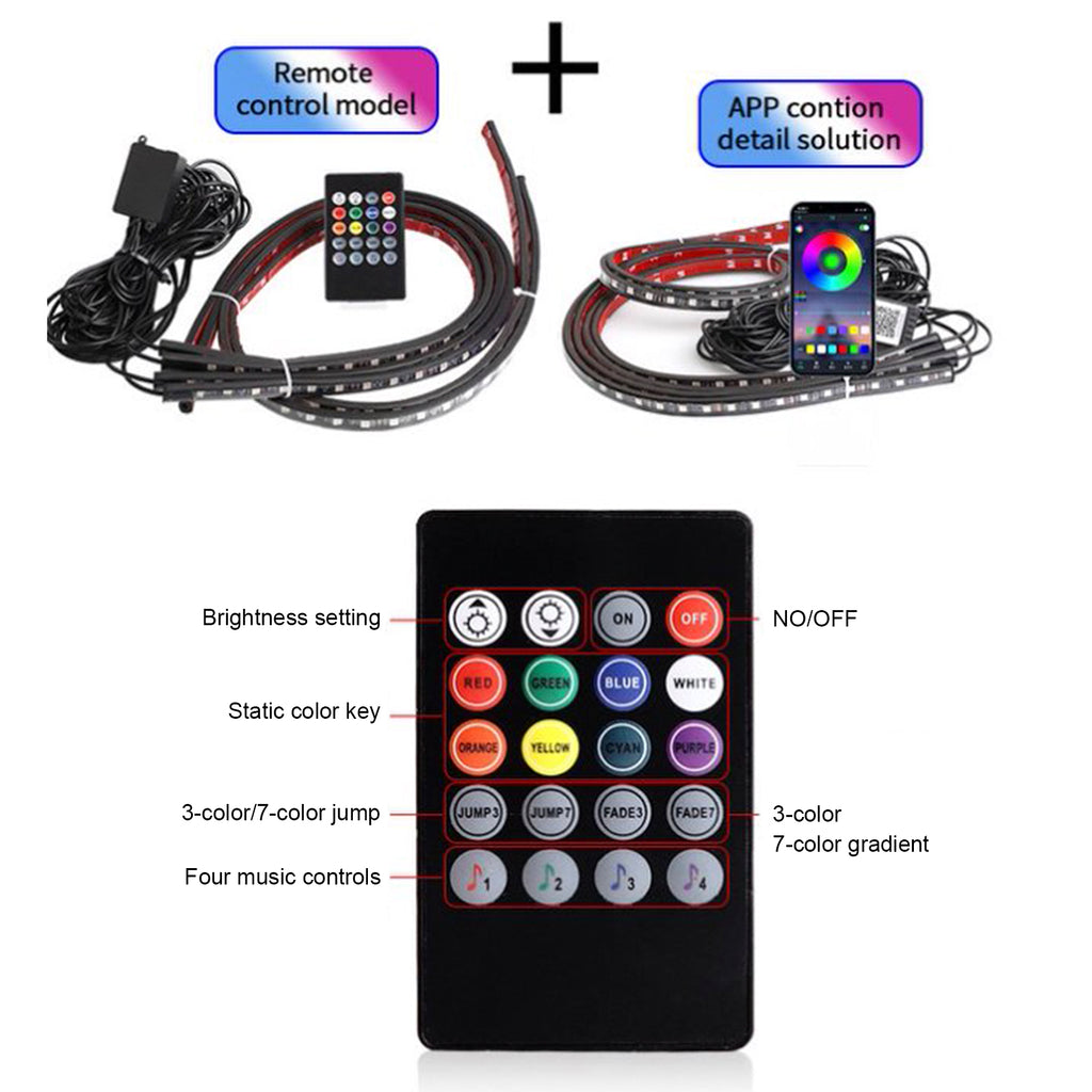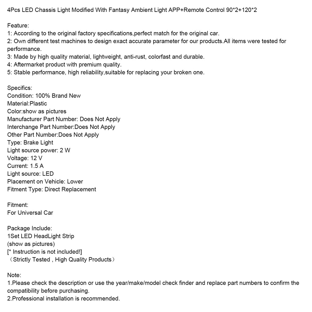 4 stuks LED-chassisverlichting aangepast met Fantasy Ambient Light APP + afstandsbediening 90 * 2 + 120 * 2