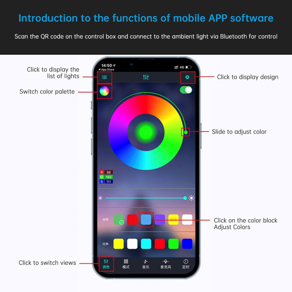 Centraal bedienbare, sfeervolle, kleurrijke LED-decoratieve binnenverlichting, 110 cm