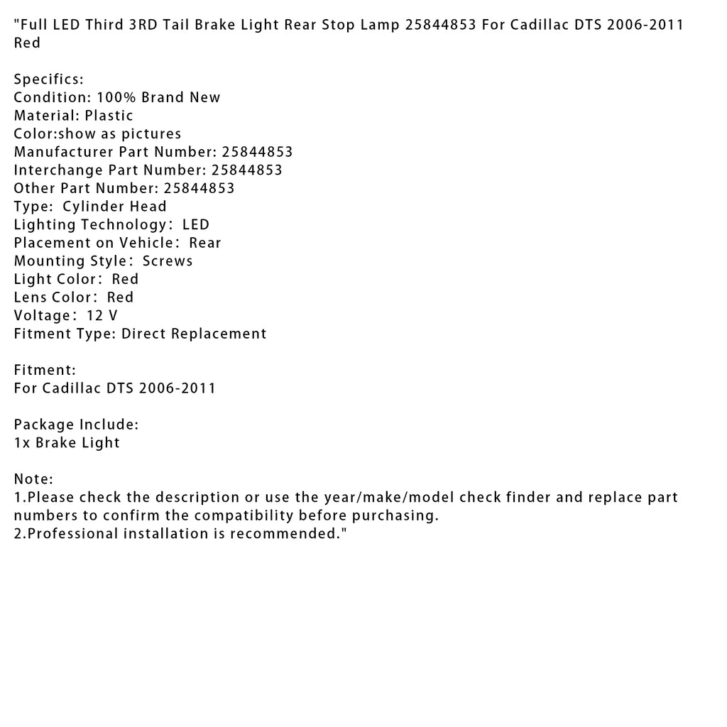 Volledig LED derde 3e achterremlicht, achterremlicht 25844853 voor Cadillac DTS 2006-2011, rood