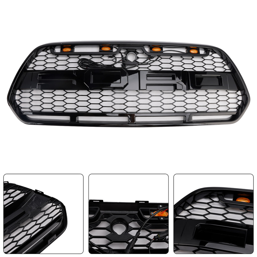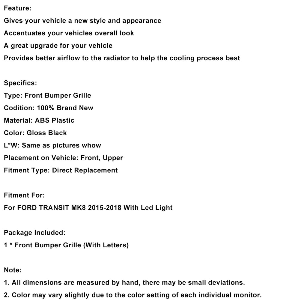 Glanzend zwarte voorbumpergrille, geschikt voor Ford Transit MK8 2015-2018 Raptor met LED