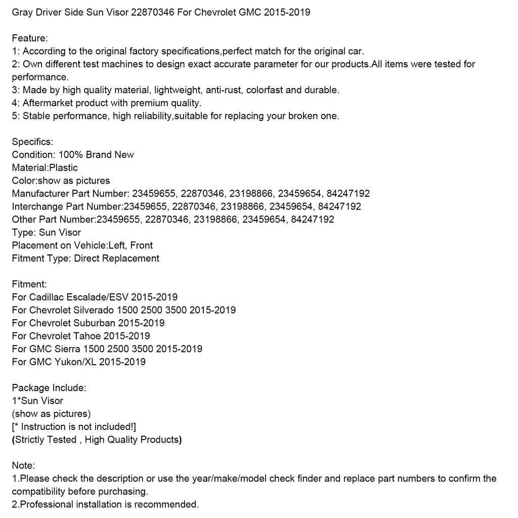 Grijze zonneklep bestuurderszijde 22870346 voor Chevrolet GMC 2015-2019